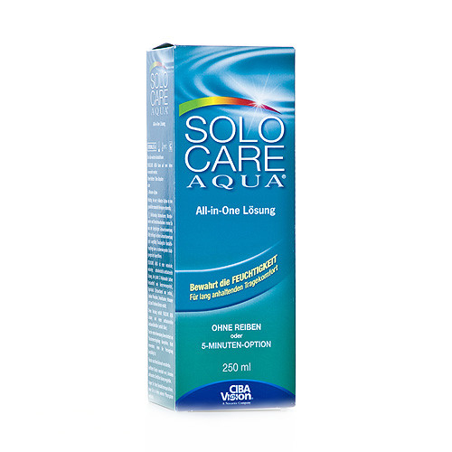 Solo Care Aqua ist für alle gängigen weichen Kontaktlinsen geeignet. Es ist ein flexibles und einfach zu handhabendes Reinigungssystem mit integriertem Reiniger. Die Reinigungszeit für die Kontaktlinsen dauert 4 Stunden.