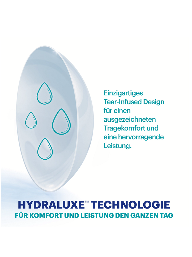 ACUVUE OASYS® 1-DAY with HydraLuxe ™ Technologie basiert auf der ACUVUE OASYS® Familie und ist die Tageslinse für herausfordernde Tage mit vielseitigen Aktivitäten. Ihre HydraLuxe™ Technologie mit dem Tear-Infused Design bietet ein verfeinertes Feuchtigkeitsnetzwerk, tränenähnliche Moleküle und hydrierte Silikone. So bleibt der Tränenfilm stabil, auch während eines Tages voller Aktivitäten wie langer Bildschirmarbeit, Aufenthalt in klimatisierten Umgebungen, Sport und Vergnügen.